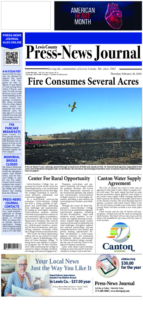 A grass and field fire was discovered on Feb.18 on Route P, west of LaGrange. The fire burned...